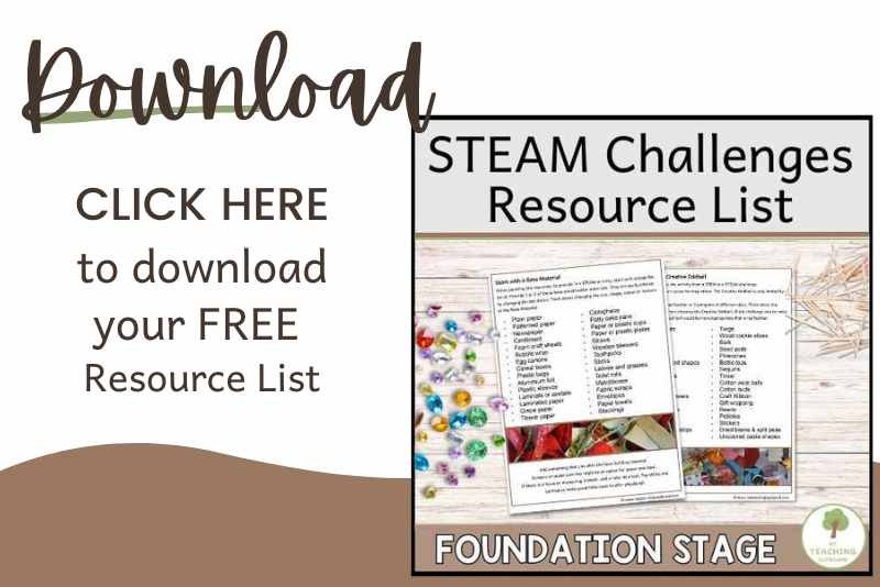 In the FREE Resource Library, you'll find the full STEAM resource list along with other practical downloads to make your play-based teaching life easier - like planning templates, classroom labels, and activity prompts.
