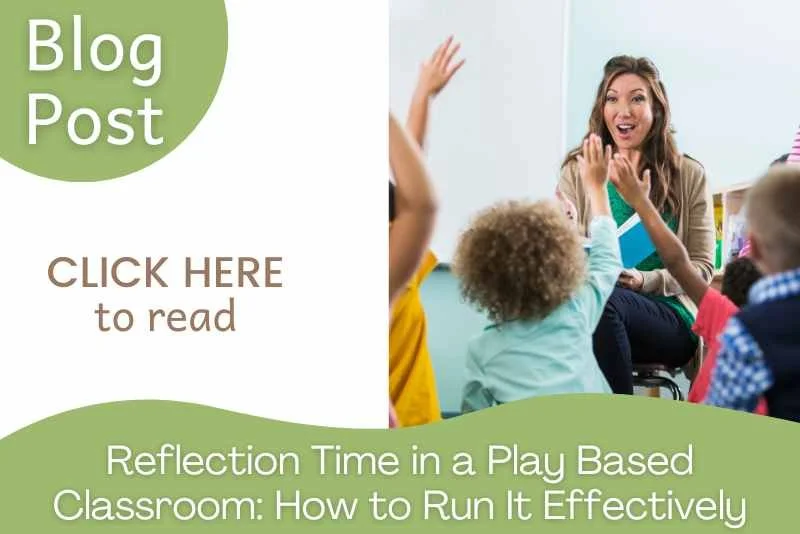 To find out more about why reflection time is a vital part of any well-run play-based classroom and learn how to effectively implement the successful Walker Learning reflection strategies (the ones that help you connect play with curriculum and support student growth), check out this blog post: How to Run Reflection Time in a Play Based Classroom to see how I run our reflection session and why it is so so so important.